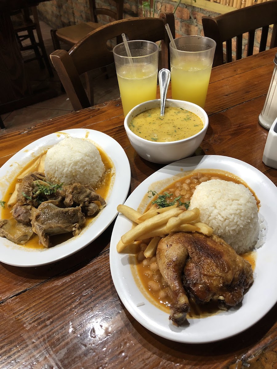 The menu is rich with traditional Ecuadorian and Latin American dishes that celebrate home-cooked goodness. A must-try is the Bandeja Paisa, a colorful platter piled high with rice, beans, grilled meat, plantains, and a fried egg - every bite bursting with flavor. If you’re in the mood for something grilled, the Churrasco Ecuatoriano is a popular pick, featuring tender steak served with rice, salad, and fried egg. And for chicken lovers, the ½ Pollo a La Brasa with Rice and Beans is a standout, seasoned to perfection and roasted until golden and juicy.